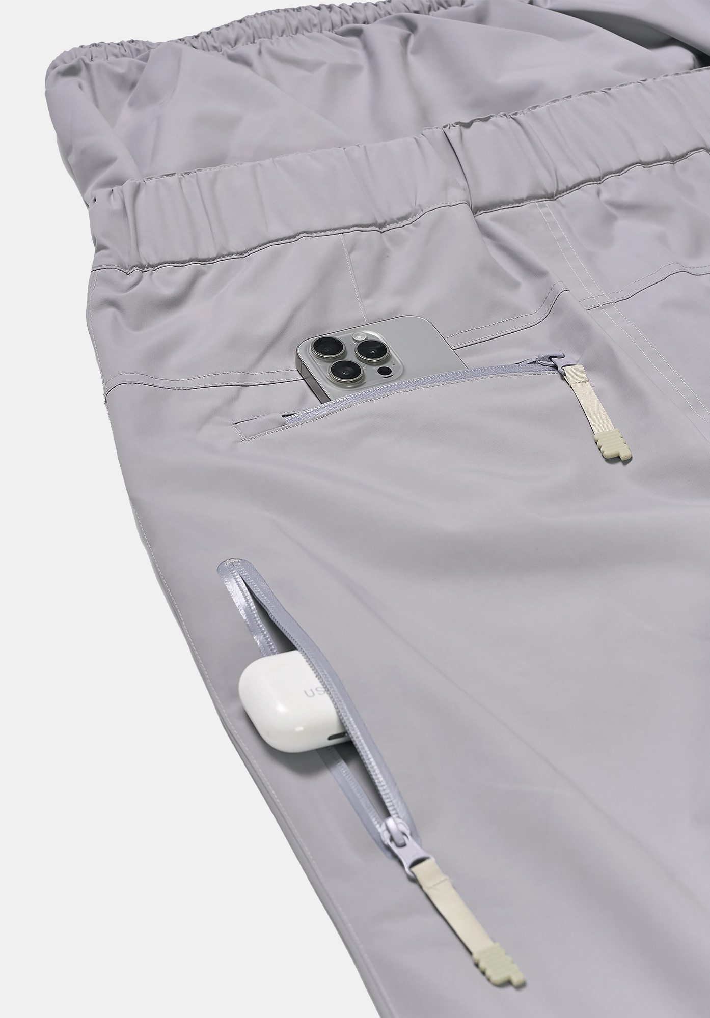 곡선 절개와 뒷면의 YKK™ 방수 지퍼 포인트가 유니크한 실루엣과 기능성을 동시에 완성합니다.