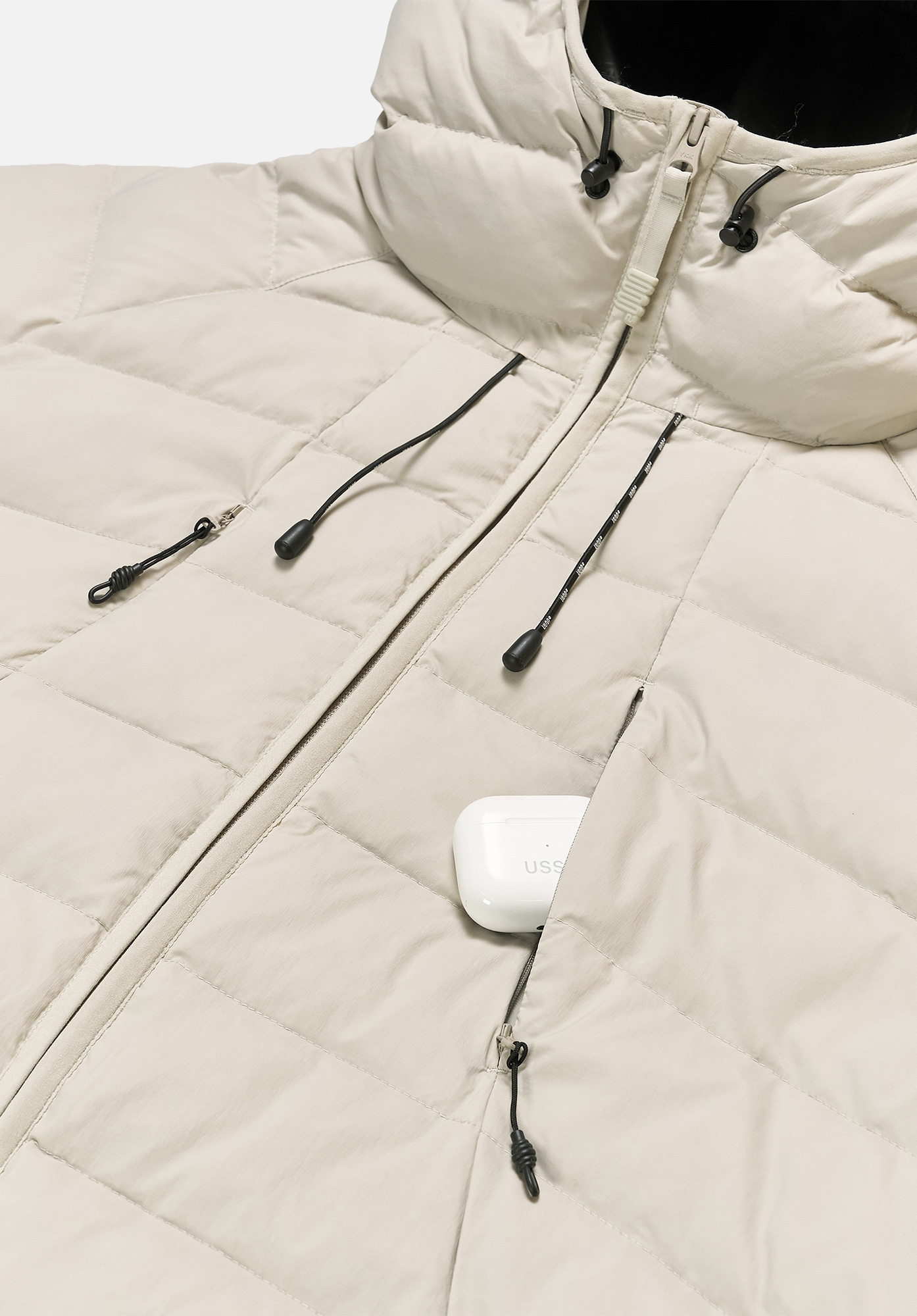 Duck Down 을 샌드위치 퀼팅 구조로 감싸, 가볍지만 우수한 보온성과 내구성을 모두 갖춘 다운입니다.
