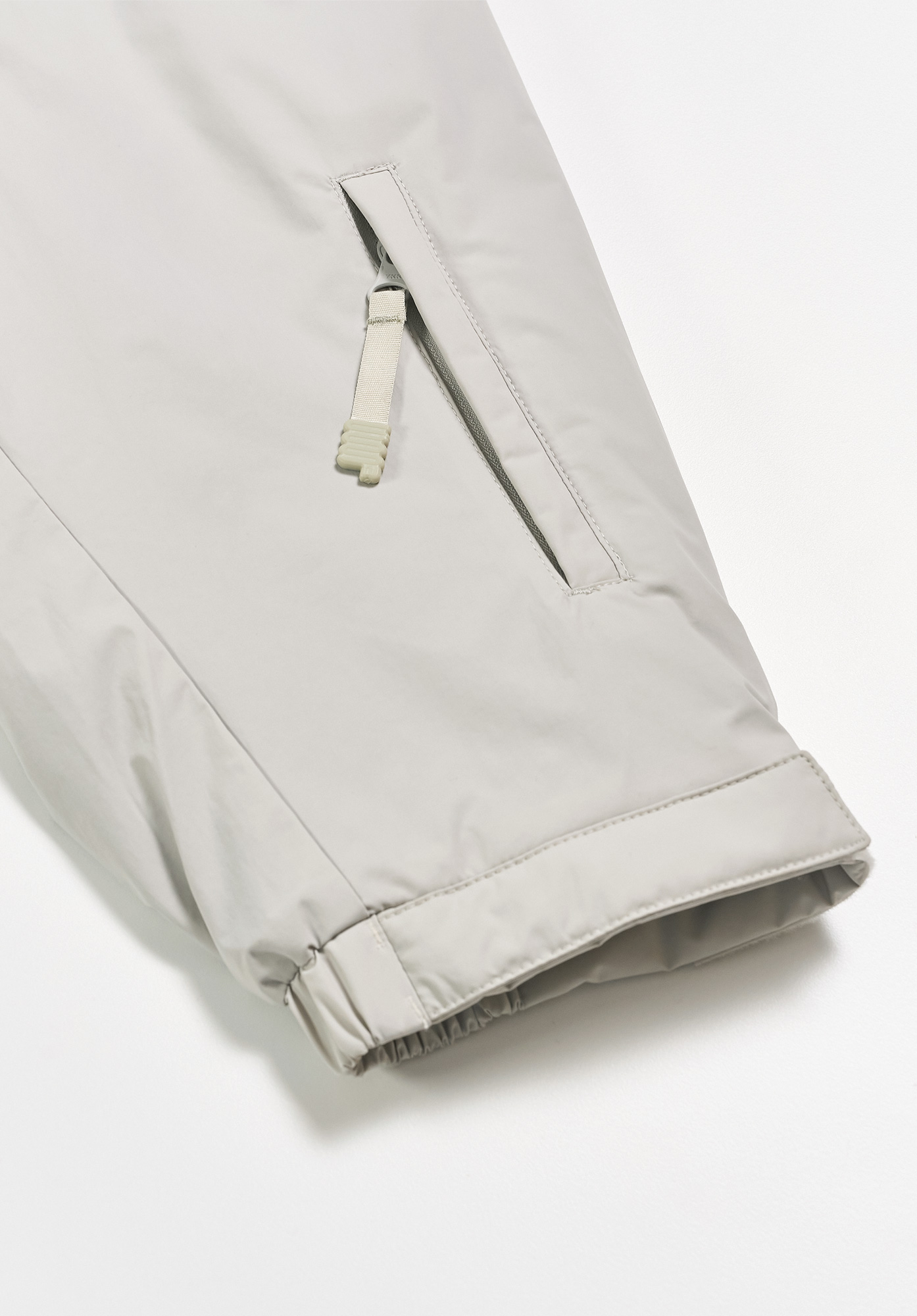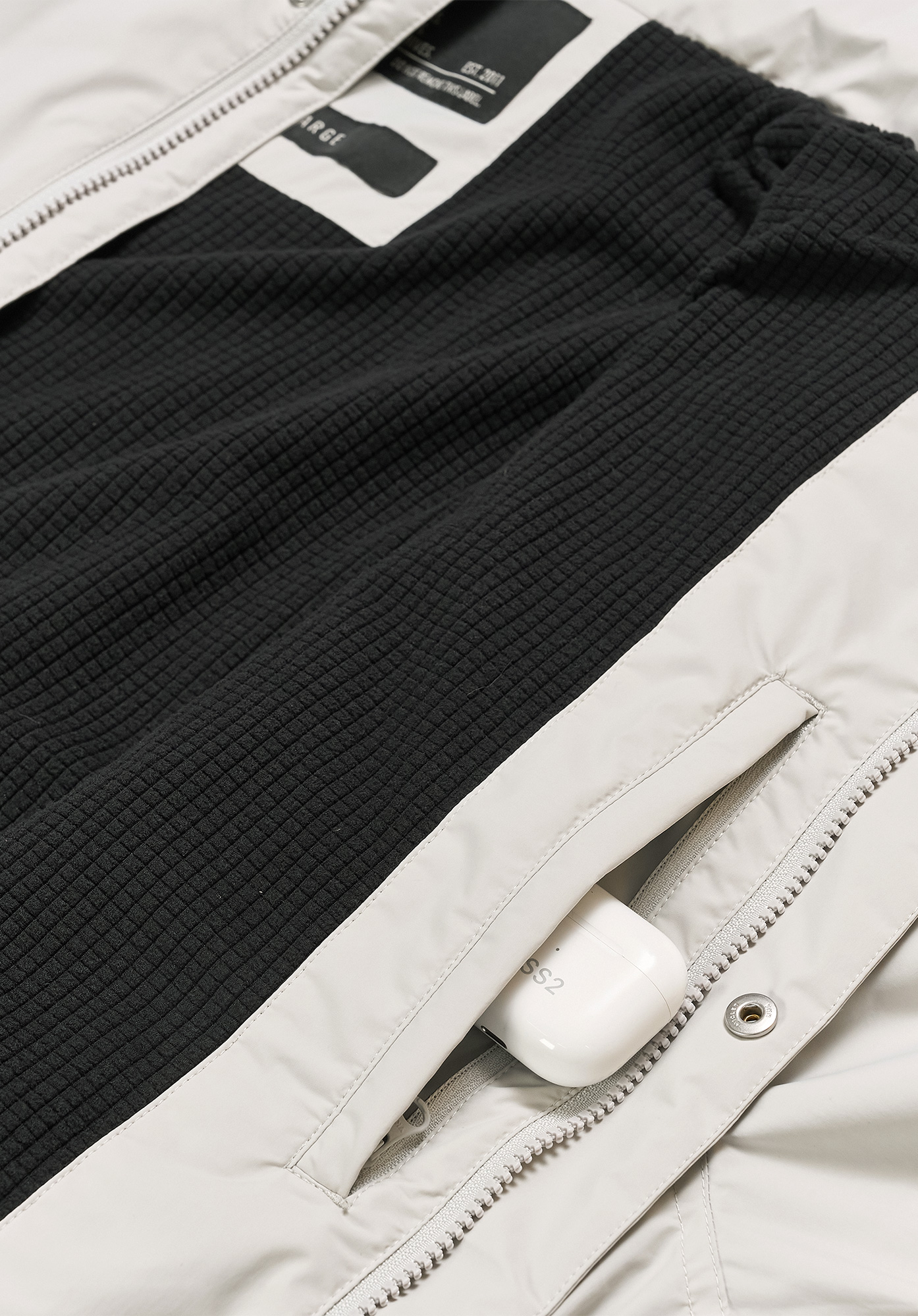 하이넥으로 디자인된 네크라인에는 후드가 내장되어 있어 다양한 환경과 스타일에 따라 자유롭게 연출할 수 있습니다.
