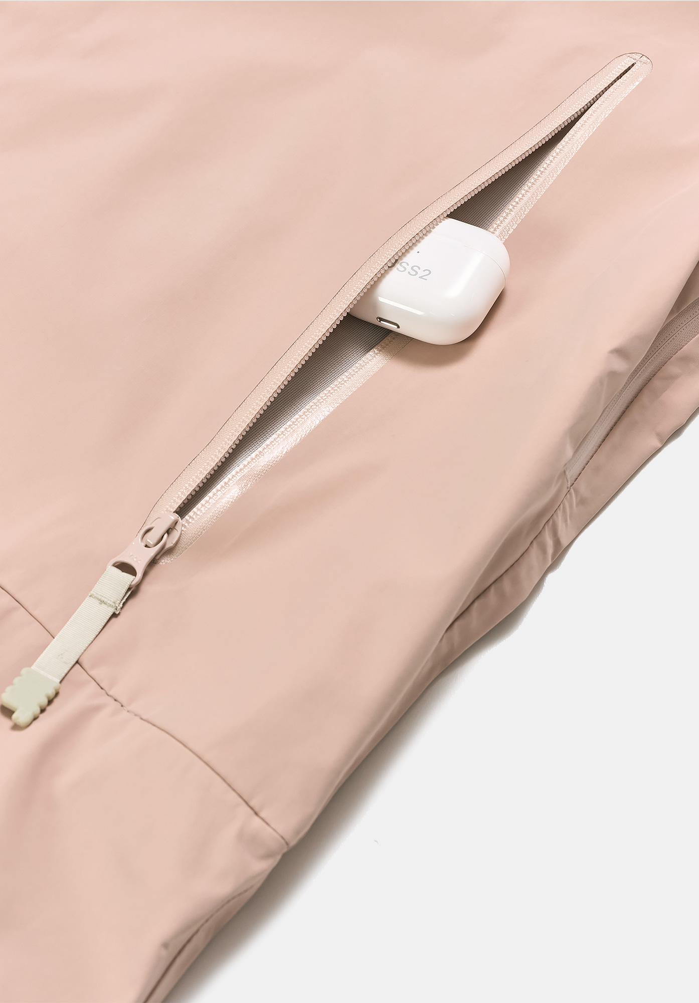 메인 부분에 적용된 YKK™ 2-way 방수 지퍼는 완벽한 방수성과 사용 편의성을 제공하며, 가슴과 양쪽 소매에 YKK™ 방수 지퍼 포켓을 배치해 실용성과 스타일을 동시에 잡았습니다.
